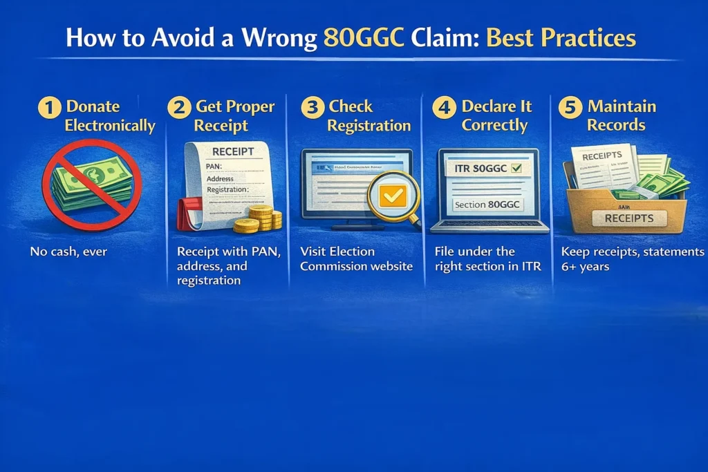 The 80GGC deduction is a solid way to reduce your tax liability while supporting political parties. But it’s not free money. It comes with strings attached.