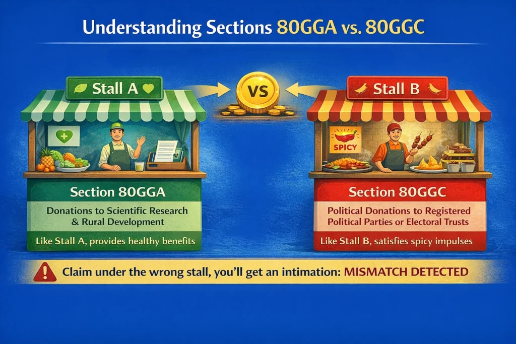 Let’s start with a common mix-up that often occurs. Many taxpayers confuse 80GGA with 80GGC. They look similar, but they’re completely different.