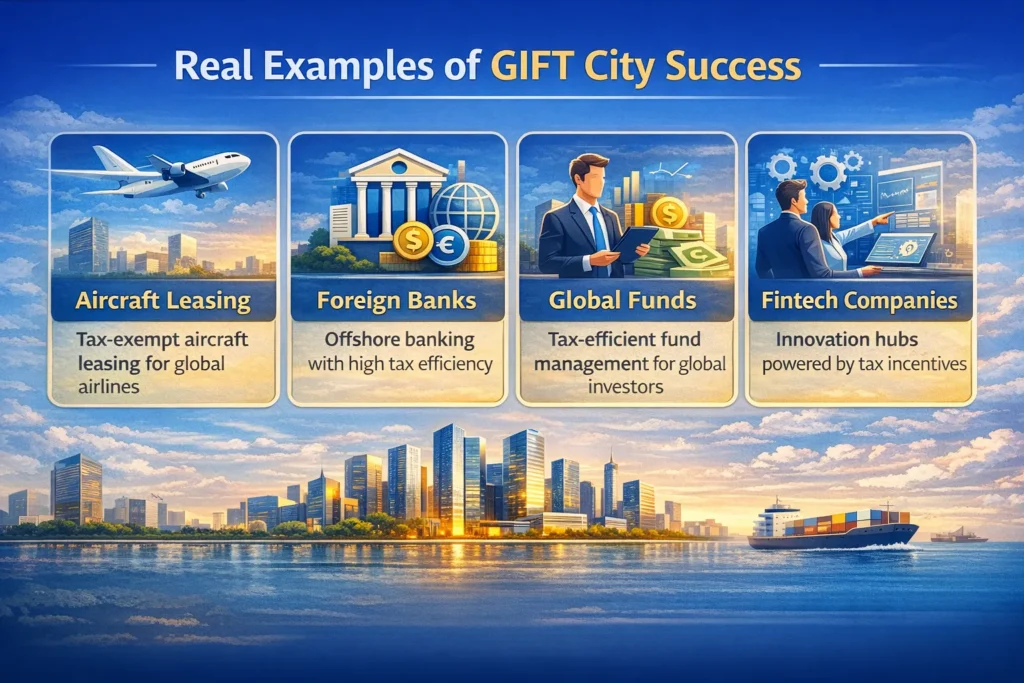 Aviation and Shipping Companies: Entities engaged in aircraft leasing, ship leasing, or aviation finance receive sector-specific tax benefits when operating from GIFT City.