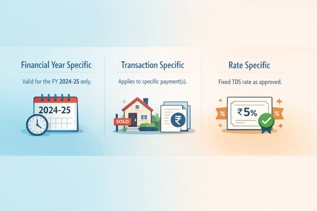 Valid for specific financial year and specified deductor only. Expires on March 31. Need fresh application next year if still required.