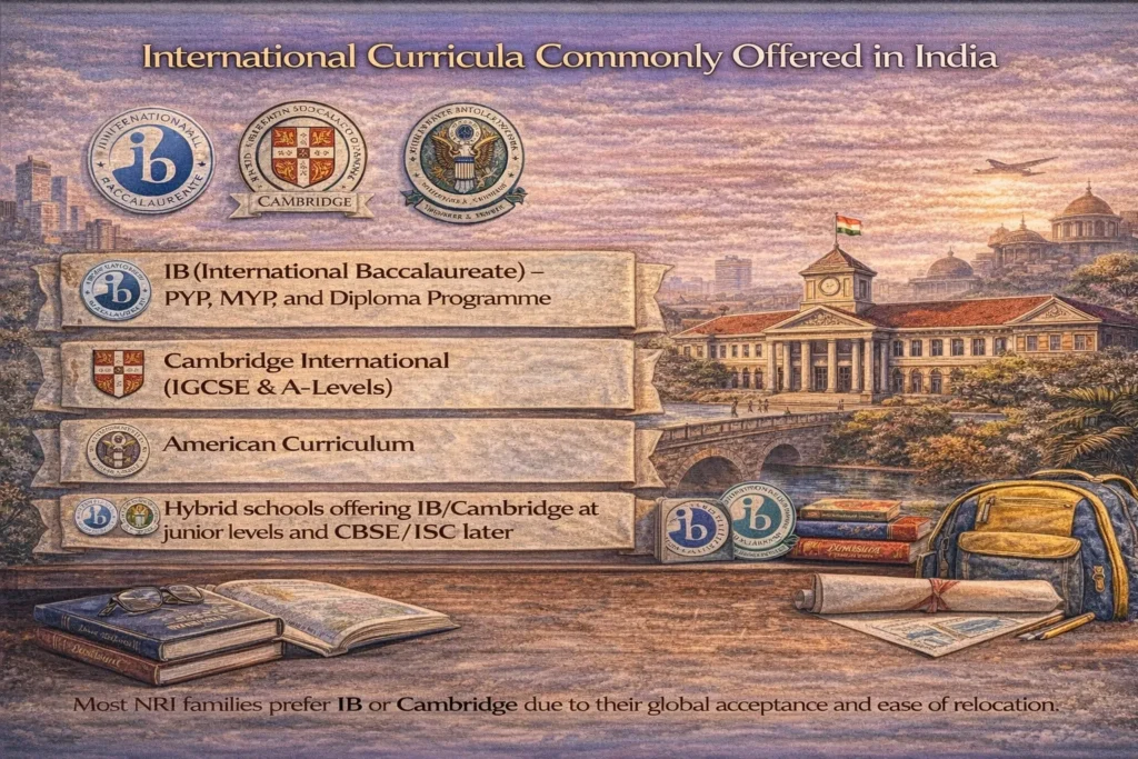 Most NRI families prefer IB or Cambridge due to their global acceptance and ease of relocation.