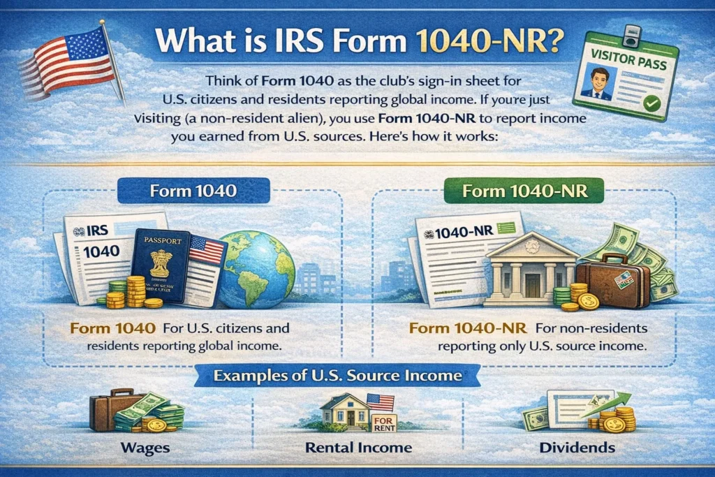 But if you are just a visitor to the club (a non-resident alien), you use a different form. You use IRS Form 1040-NR. This form has one main job: to report the income you earned from within the United States.