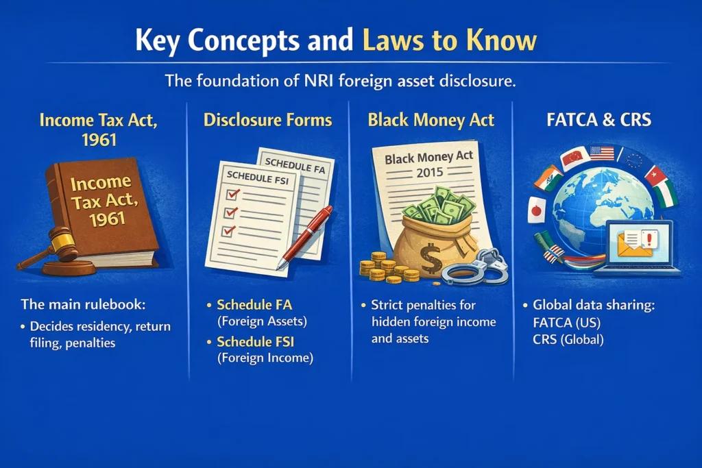Before we dive into the details, let us get familiar with the key players. Think of this as learning the rules of the road before you start driving. These laws and forms are the foundation of NRI foreign asset disclosure.