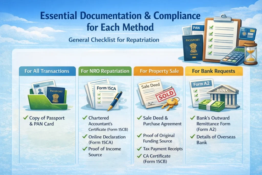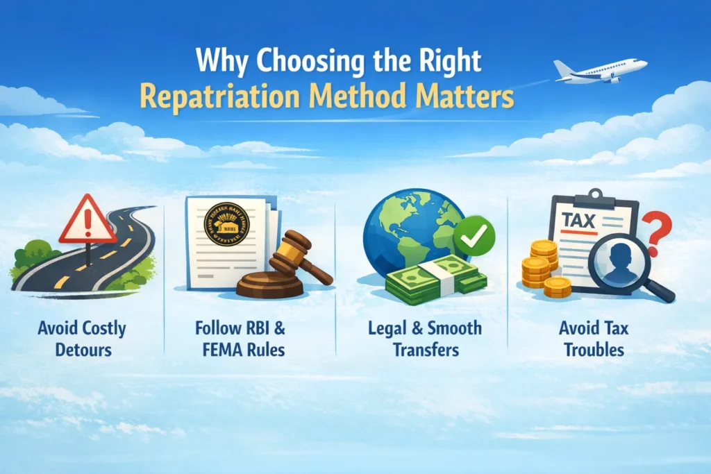 Each type of bank account and income source in India has its own set of repatriation rules, governed by the Reserve Bank of India (RBI) and the Foreign Exchange Management Act (FEMA). Using the correct method ensures your transfer is smooth, legal, and tax-efficient. It helps you avoid the headache of your bank rejecting the transaction or facing questions from tax authorities.